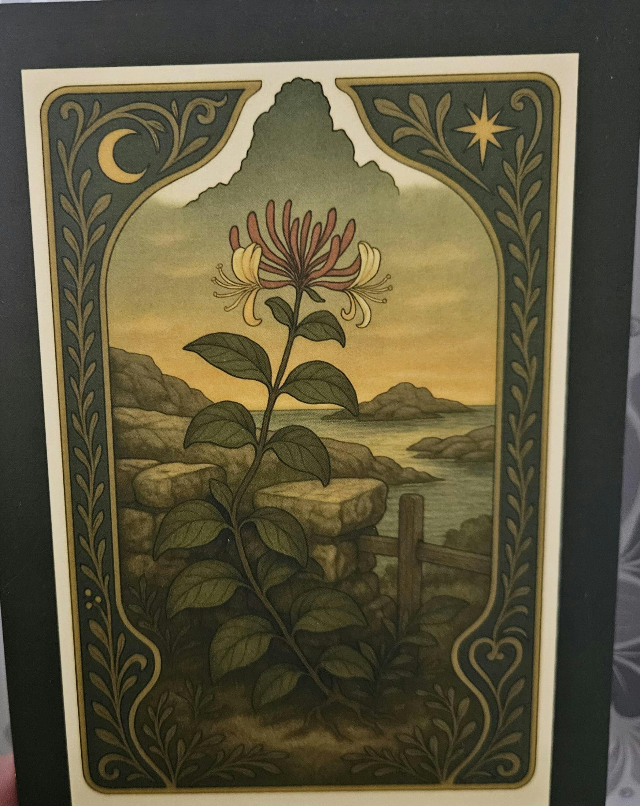 Kvällsdoft av salt och solvarm sten. Vildkaprifolen slingrar sig fritt över klippor och sjöbodar och bär sommarens milda eld i sina blommor.